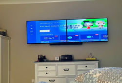 No more debating over which TV show to watch or being subject watching your favorite TV show in a different room. ihangTVs.com has come up with a great solution. This installation allows you to watch TV with your spouse in the same room and with separate sound using Bluetooth headphones.* Also with this installation with the click of a few buttons you can turn the two